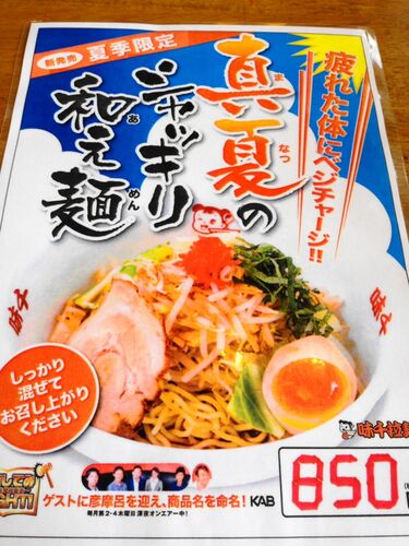 ゴルフ帰りの昼食で「味千ラーメン」(掛川市南)に寄る。 ここのラーメン屋さんにはちょくちょく来ているので正直定番のラーメンは飽きている。(もちろん味が悪いわけではない) そんなわけで、夏季限定のラーメンをチョイス。ただ真夏の…と言われても、今…